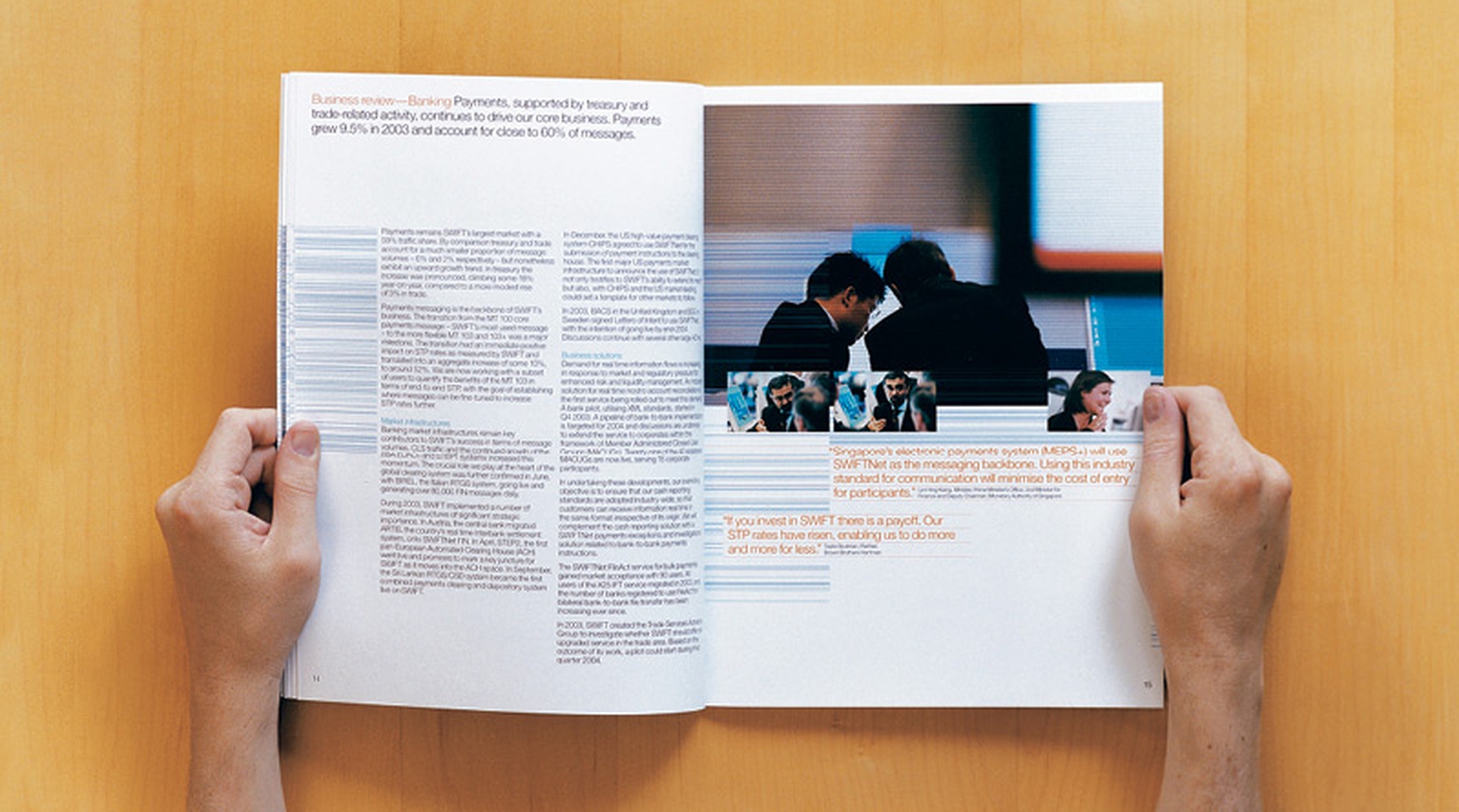 The Society for Worldwide Interbank Financial Telecommunication, SWIFT, provide secure global messaging to the worlds banks and financial institutions. For the Annual Report a textural visual language was created that represented the electronic transfer of information.